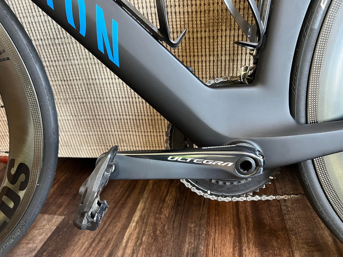 Are you 6'0" to 6'6" and looking for a lethal triathlon bike to take you to the podium in 2026. Look no further than this Canyon Speedmax CF8 Rim Brake Triathlon Bike equipped with Reynolds Carbon AR58 wheels and Shimano Ultegra R8000 11 Speed components. This Canyon Speedmax CF8.0 Triathlon Bike is pre-owned with roughly 2,300 miles ridden on the bike and less than 100 miles on the current tires.