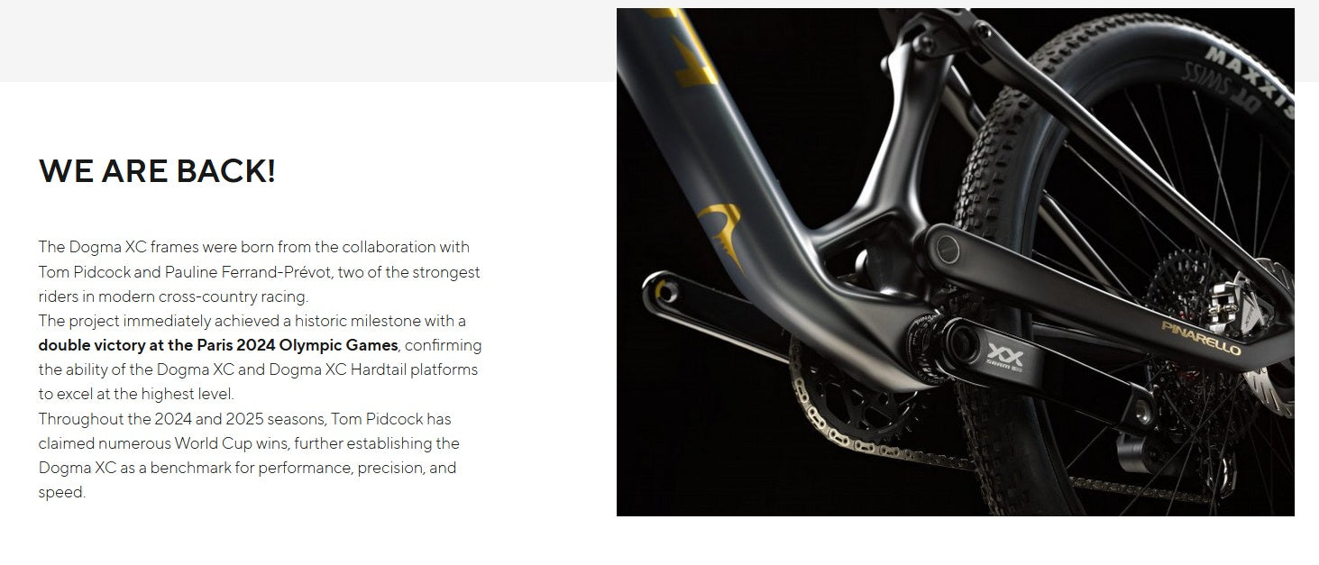 The Pinarello Dogma XC Full Suspension Mountain Bike project immediately achieved a historic milestone with a double victory at the Paris 2024 Olympic Games, confirming the ability of the Dogma XC and Dogma XC Hardtail platforms to excel at the highest level.