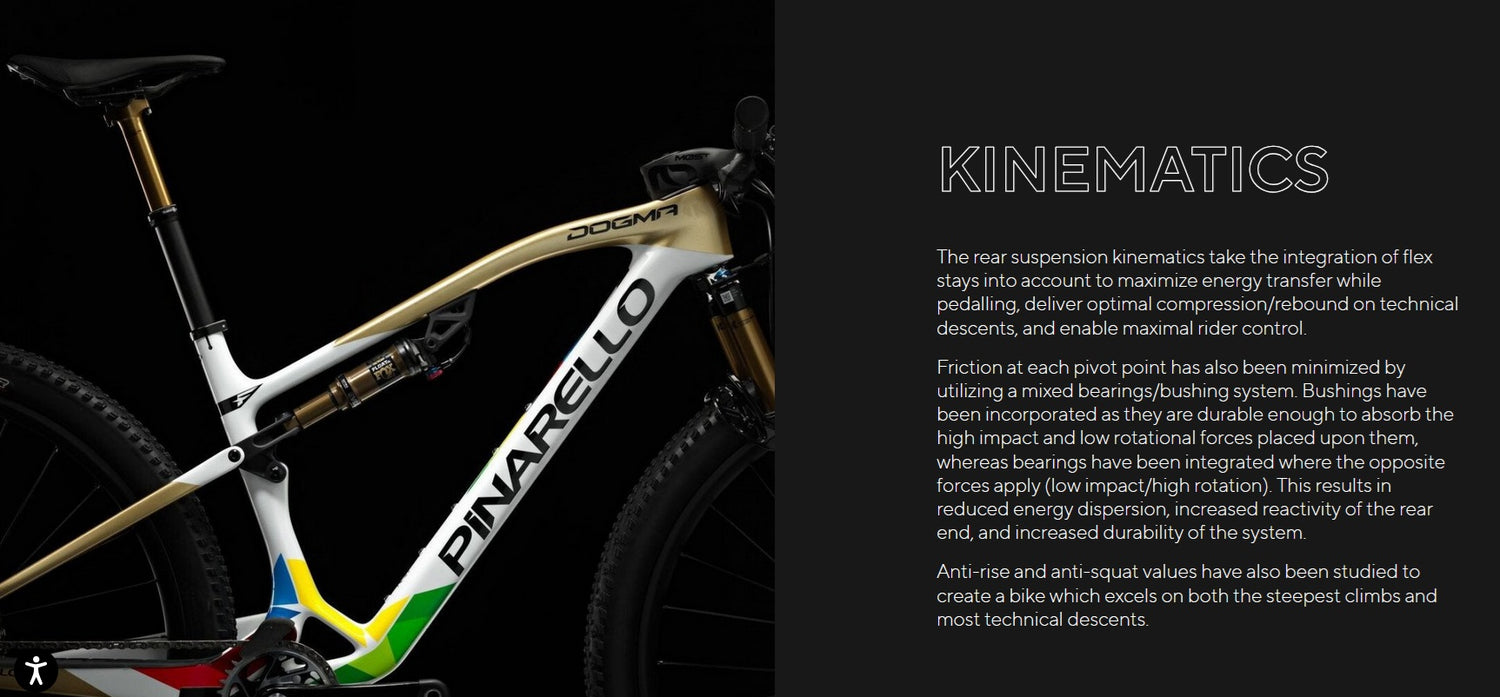 Anti-rise and anti-squat values have also been studied to create a bike which excels on both the steepest climbs and most technical descents.