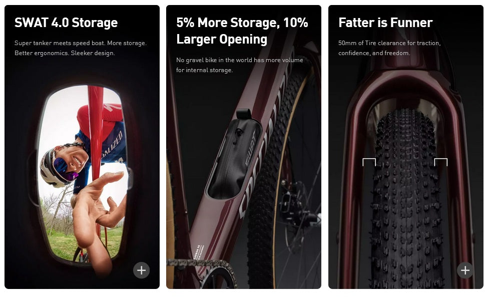 - Frame - Specialized Diverge FACT 9r carbon, SWAT™ Door integration, Future Shock suspension, threaded BB, internal routing, 12x142mm thru-axle, flat-mount disc, UDH dropout