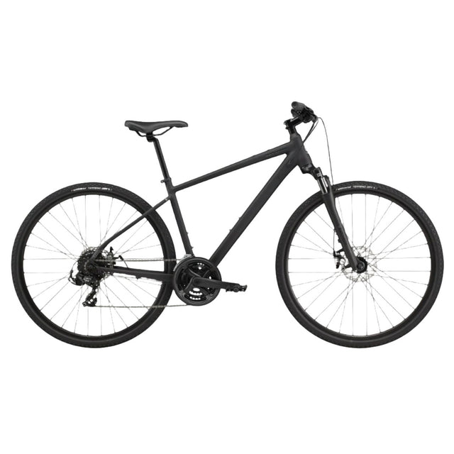 The Cannondale Quick CX 4 Hybrid suspension bike is an urban-adventure bike for cities and town pathways, open countryside and everything else. Expand your horizons on one bike to do it all. The Cannondale Quick CX 4 Hybrid suspension bike thrives in town, on leisurely rides, and on crowded streets. The Cannondale Quick CX 4 Hybrid suspension bike is built for visibility, agility, and comfort.