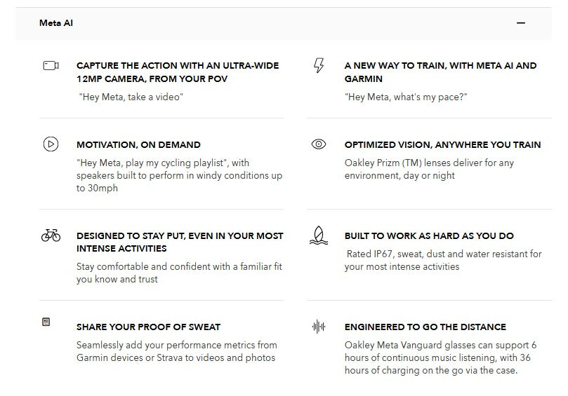 Oakley Meta Vanquish AI Sunglasses Powered by Meta AI and Garmin