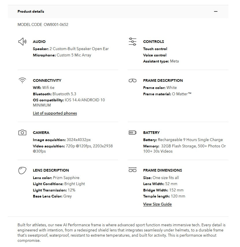 - Immersive Audio - Powerful open-ear speakers, built into the temples deliver epic, immersive audio that keeps athletes in the zone in any condition.