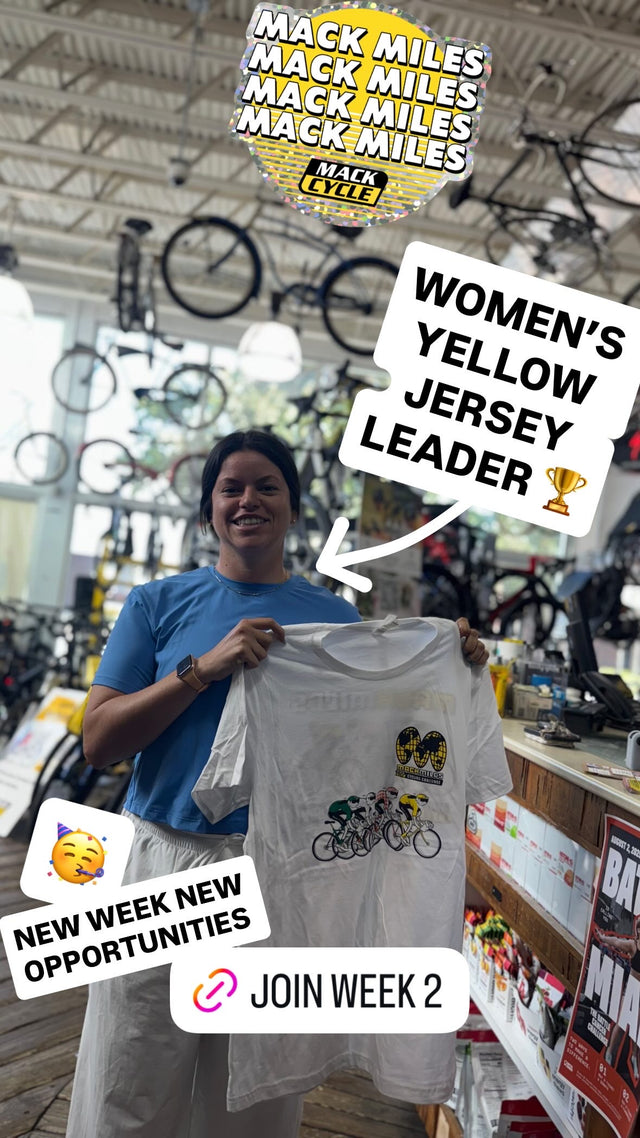 This limited-edition Mack Miles 2025 T-shirt is for weekly leaders in our Mack Miles Strava Challenge. Whether you earned the Yellow, Green, Polka Dot, or White Jersey, this tee is your badge of honor.