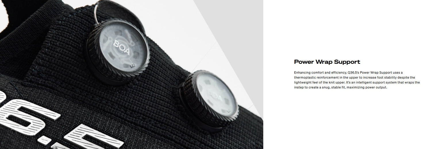 - PowerWrap Support - Enhancing comfort and efficiency, Q36.5’s Power Wrap Support uses a thermoplastic reinforcement in the upper to increase foot stability despite the lightweight feel of the knit upper. It’s an intelligent support system that wraps the instep to create a snug, stable fit, maximizing power output.