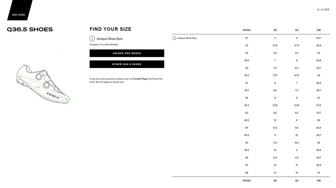 - A Unique Last - Forming the foundation of Q36.5 shoes design, a hand-shaped, custom last supports the foot with firm heel retention and an instep that cradles the foot's natural contours ensuring proper power transfer while minimizing fatigue. A roomy toe box enhances comfort for a broad majority of foot widths.