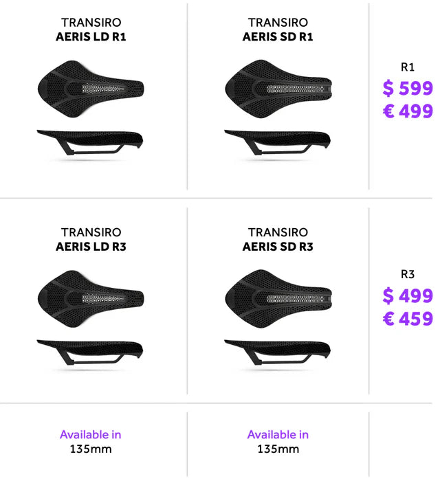 • Prices range from $499-$599 for your custom 3D printed Adaptive Fizik saddle.