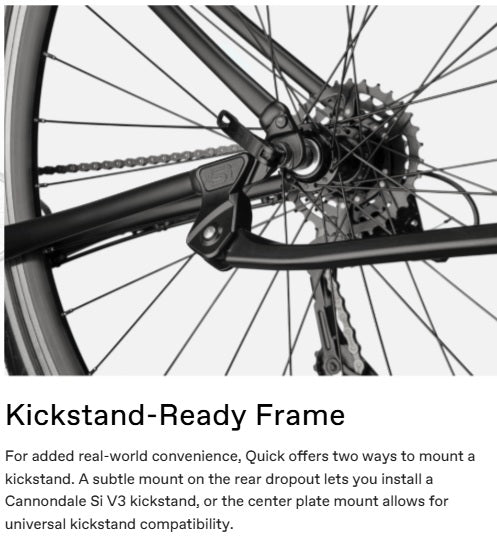 - Frame - Quick, SmartForm C3 Alloy, tapered head tube, Straightshot hidden cable routing, V-brake mounts, rack/fender/Si kickstand mounts