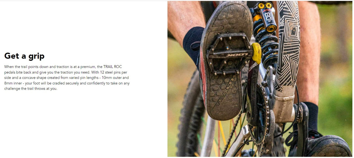 - When it comes to ‘spin-it-to-win-it’ speed nobody can match LOOK’s legendary experience. Trail Roc uses a premium bearing and bushing system for speed boosting efficiency twinned with epic durability. Laser etched logos underline Trail Roc’s long-lasting style.
