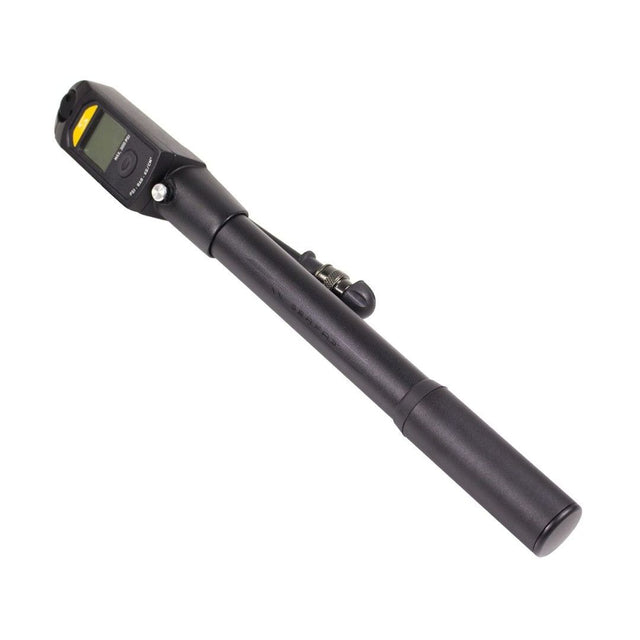 The Serfas MPD-1 Digital Mini Pump features a compact size with foldable hose and telescoping handle. Ready for both Presta and Schrader style valves. Digital gauge reads 5PSI to 300PSI and features micro adjust bleeder.