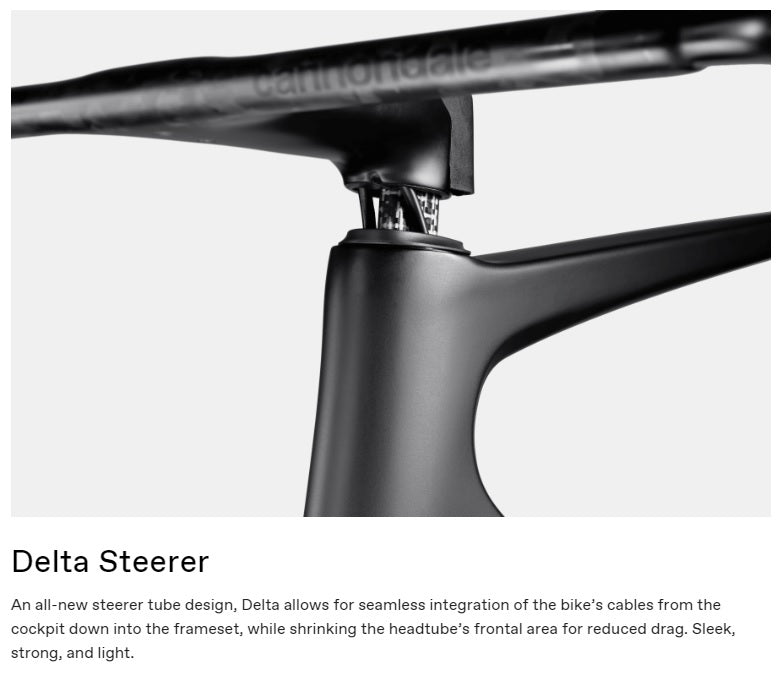 - Fork – SuperSix EVO Carbon, integrated crown race, 12x100mm Syntace thru-axle, flat mount disc, internal routing, 1-1/8" to 1-1/4" Delta steerer, 55mm offset (44-54cm), 45mm offset (56-61cm)