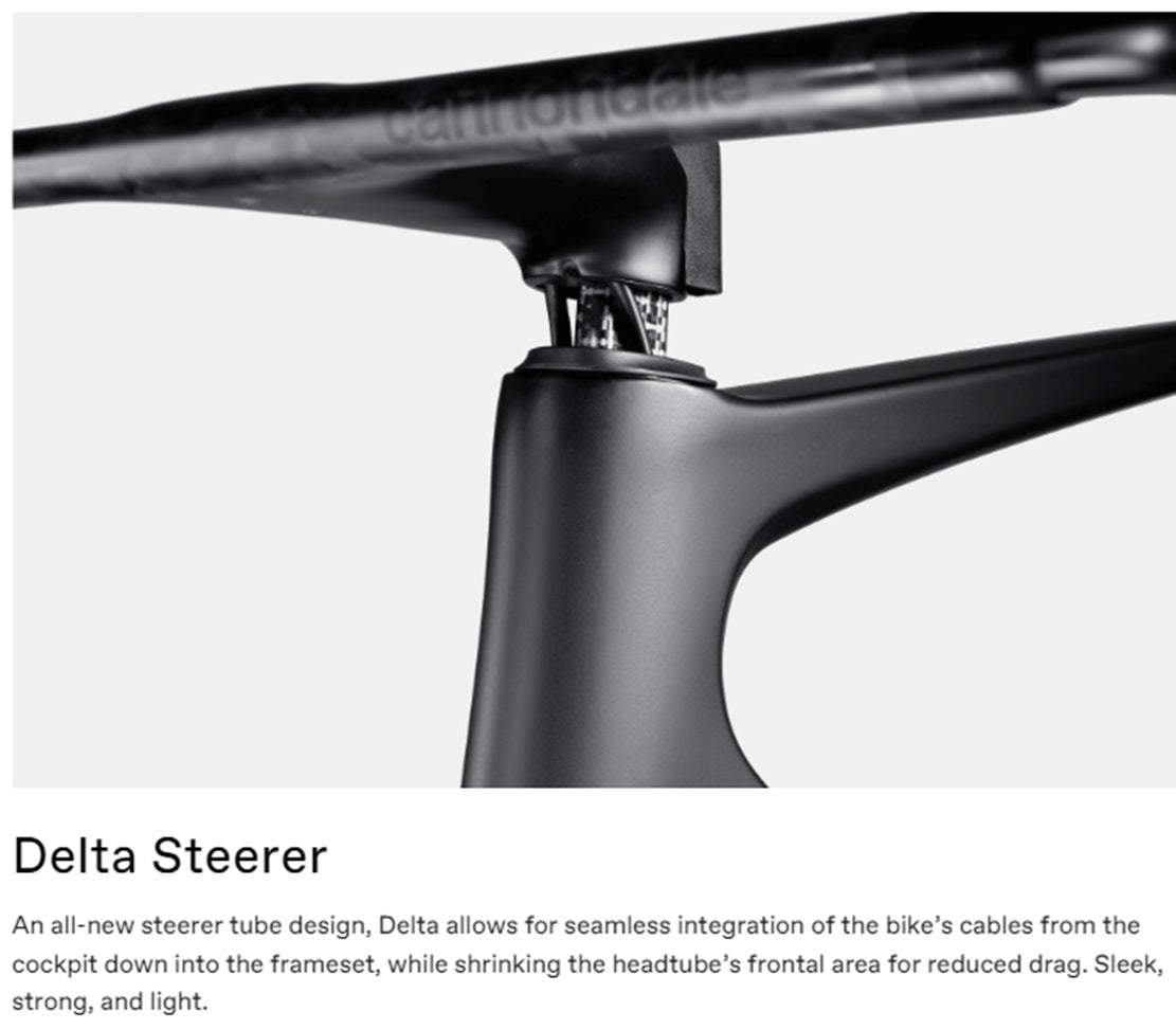 - Fork: SuperSix EVO Carbon, integrated crown race, 12x100mm Syntace thru-axle, flat mount disc, internal routing, Delta steerer